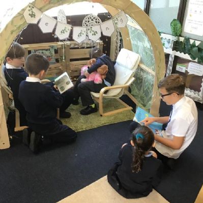Reading Buddies. Once each week we pair up with a buddy from a different class to read.