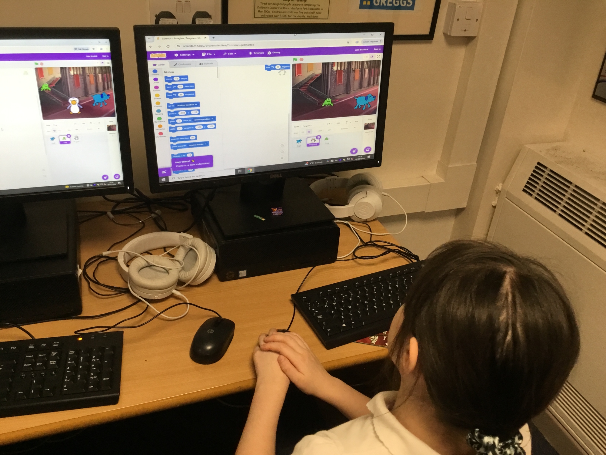 Intro to Scratch- choosing sprites, costumes, backgrounds and experimenting with movement