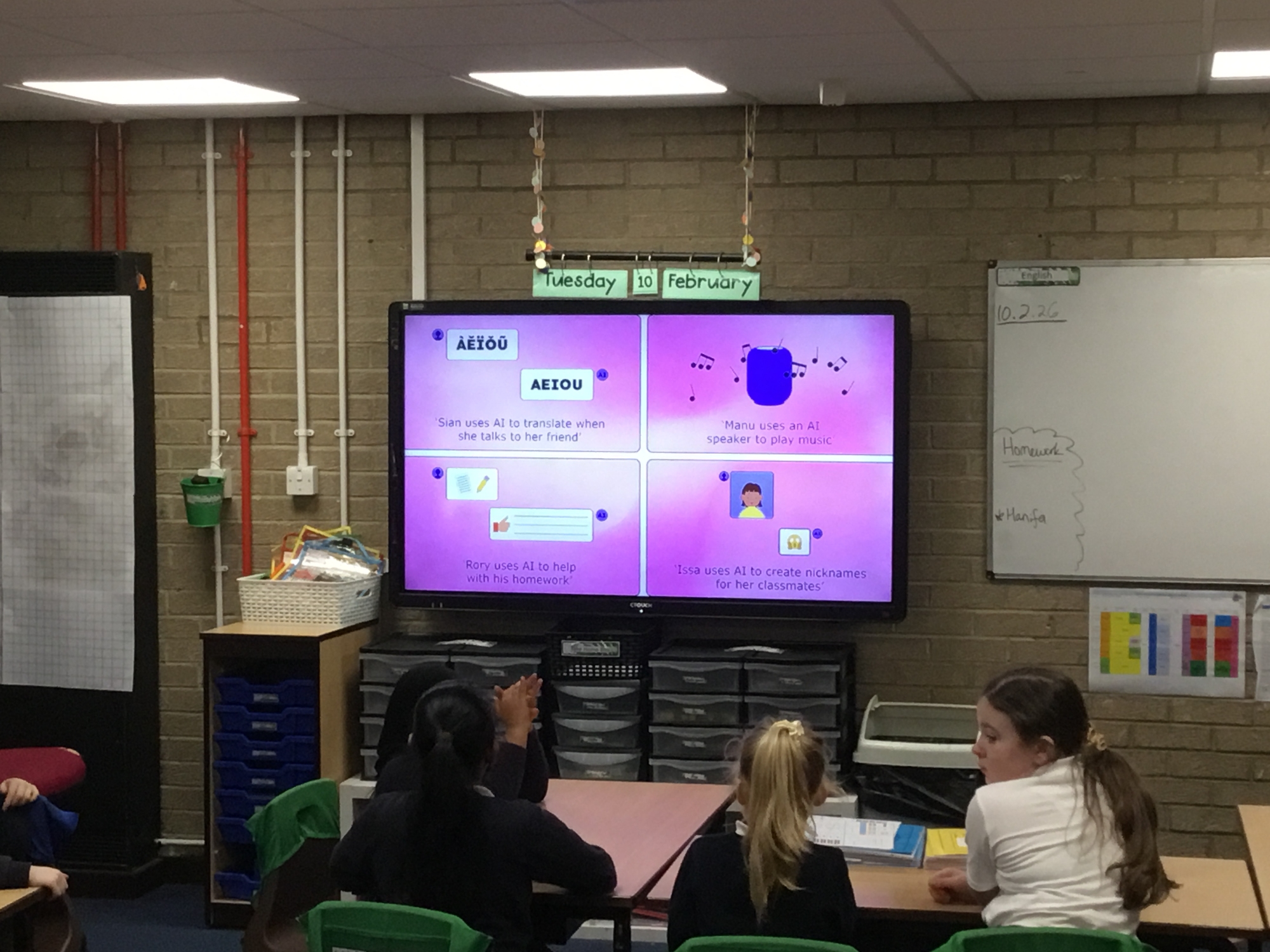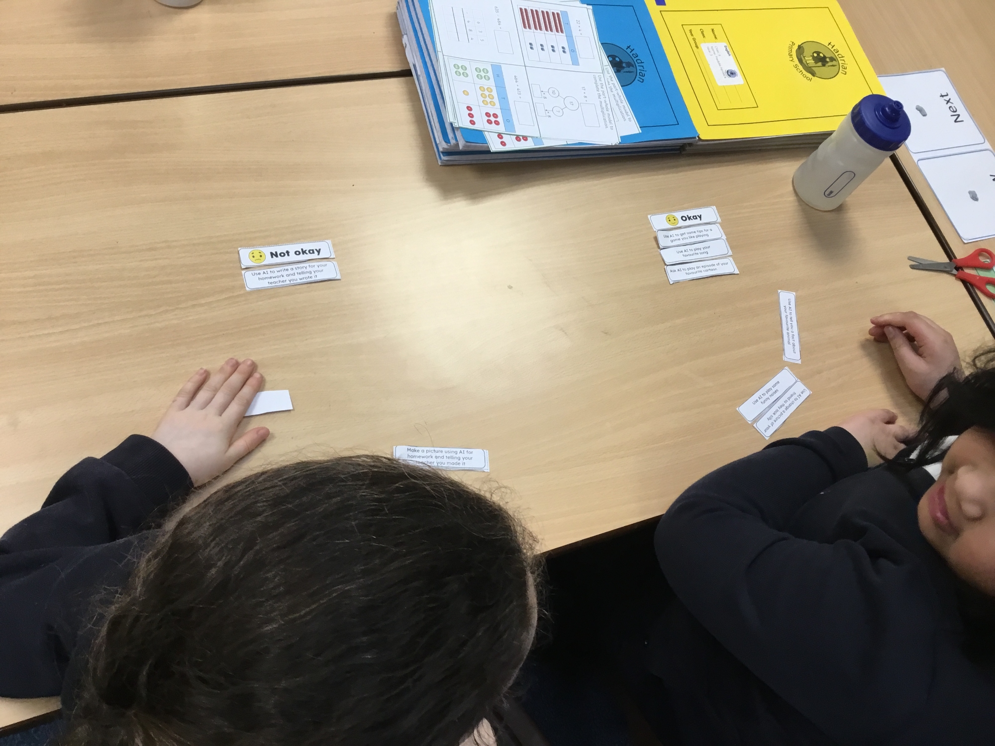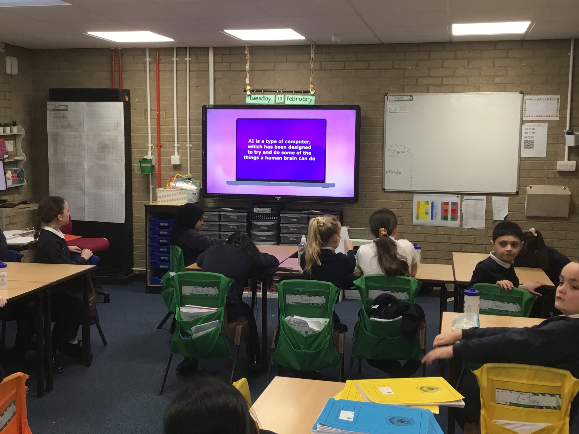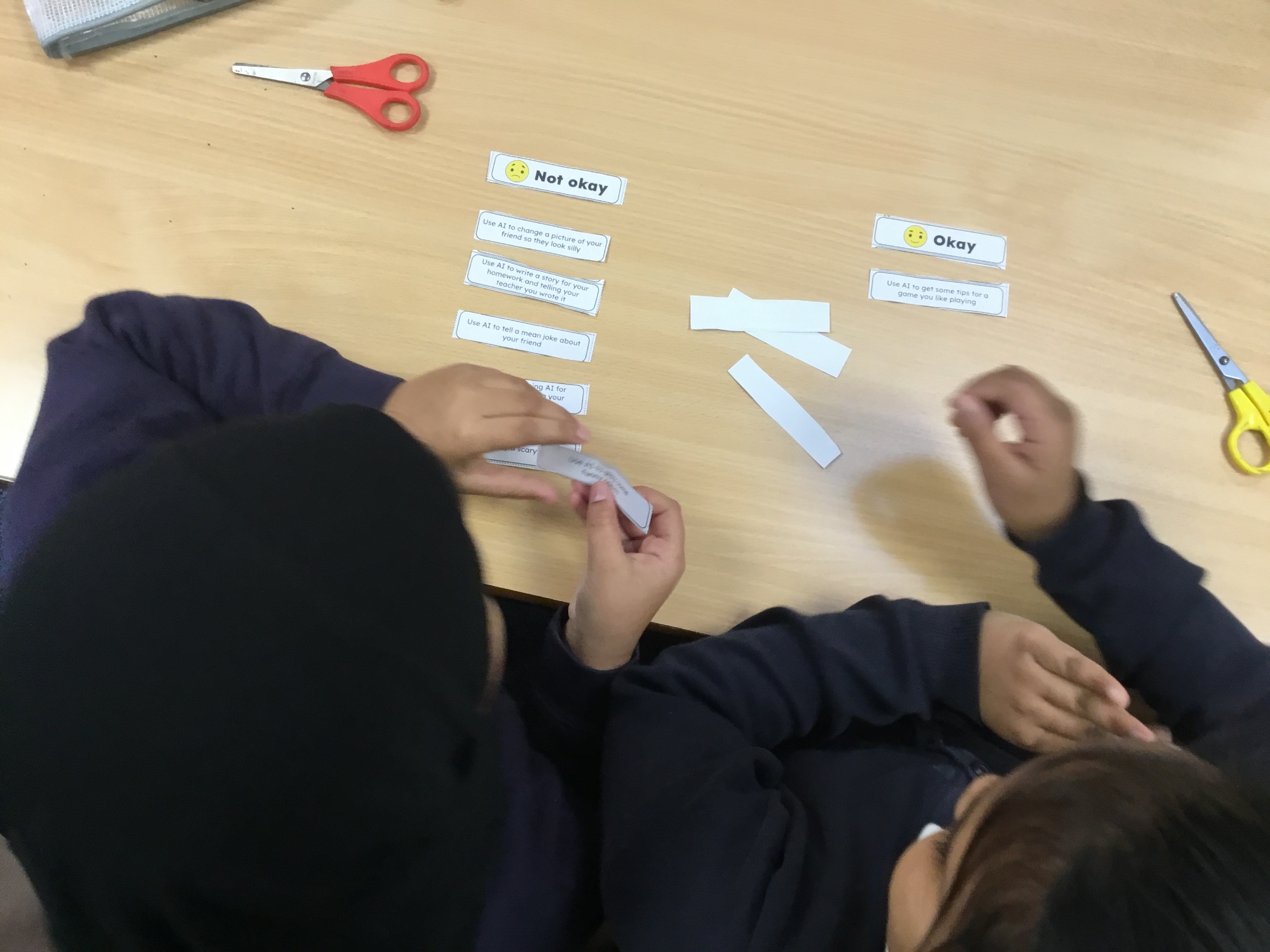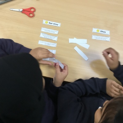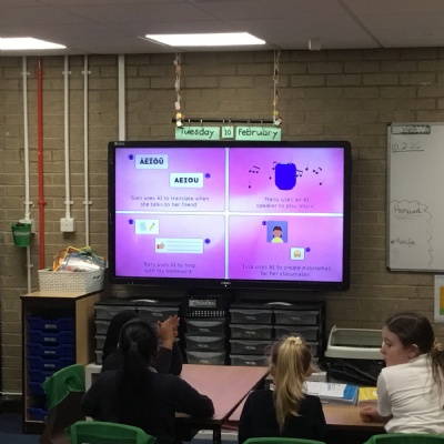 Safer internet day- we talked about responsible and safe use of technology and AI, we discussed some scenarios and gave safety advice and then we decided what was 'Okay' and 'Not Okay' when using AI.