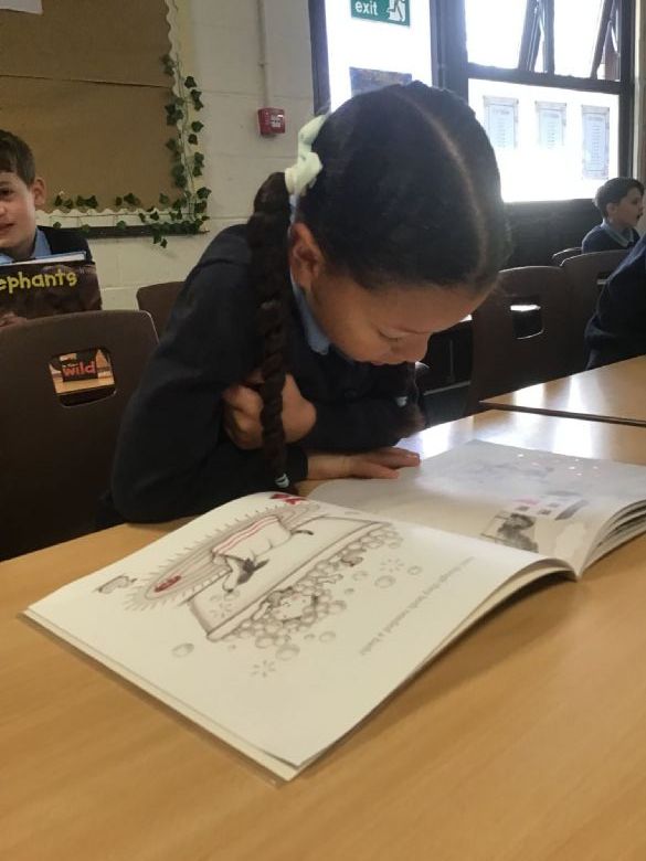 Each classroom features dedicated book areas, designed to promote rich reading experiences through a diverse selection of accessible texts. Our school and class libraries are thoughtfully curated, with books attractively displayed to invite independent browsing. We regularly review our book stock to ensure it reflects the diversity of our school community and the wider world, allowing our pupils to see themselves represented in the stories they read.